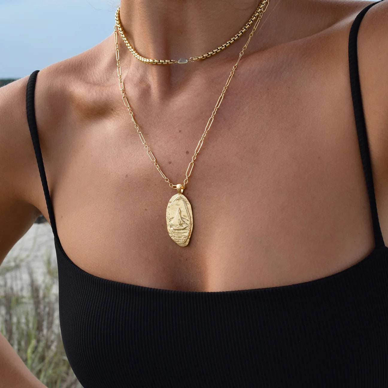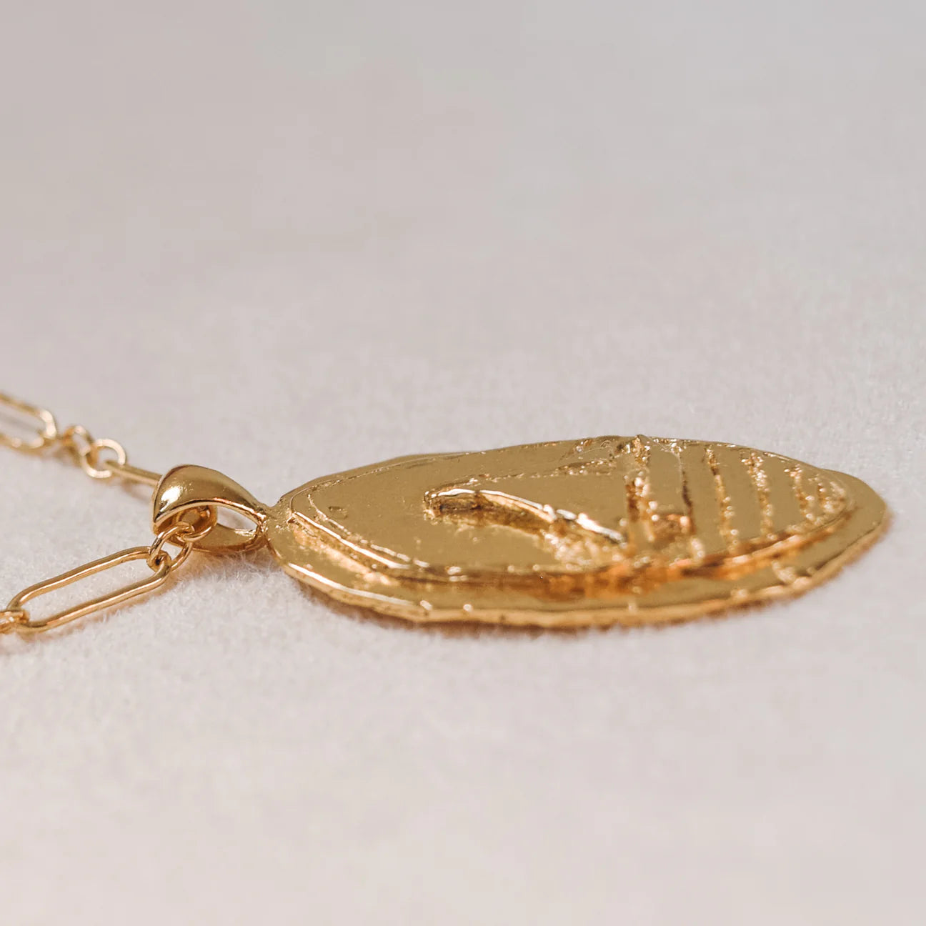 A sun-warmed golden memory, preserved in time. This textured pendant captures the spirit of endless summer days - inspired by sun-drenched afternoons, salt-kissed air, and the feeling of drifting without destination. A keepsake for those forever tied to the sea - a token of summers past, and the ones still to come.
