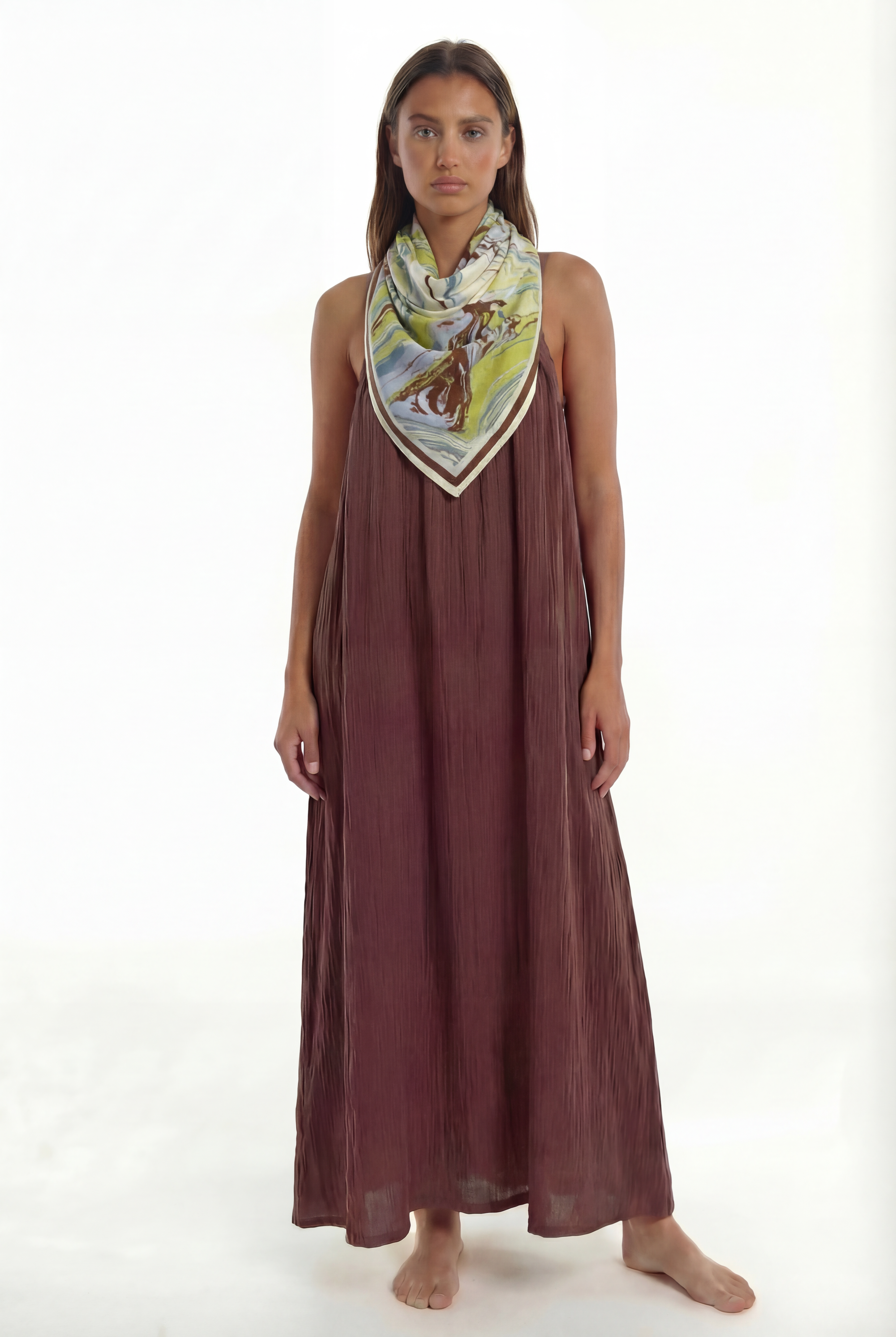 Our new scarf in marbled printed fabric- the perfect addition to elevate any outfit!