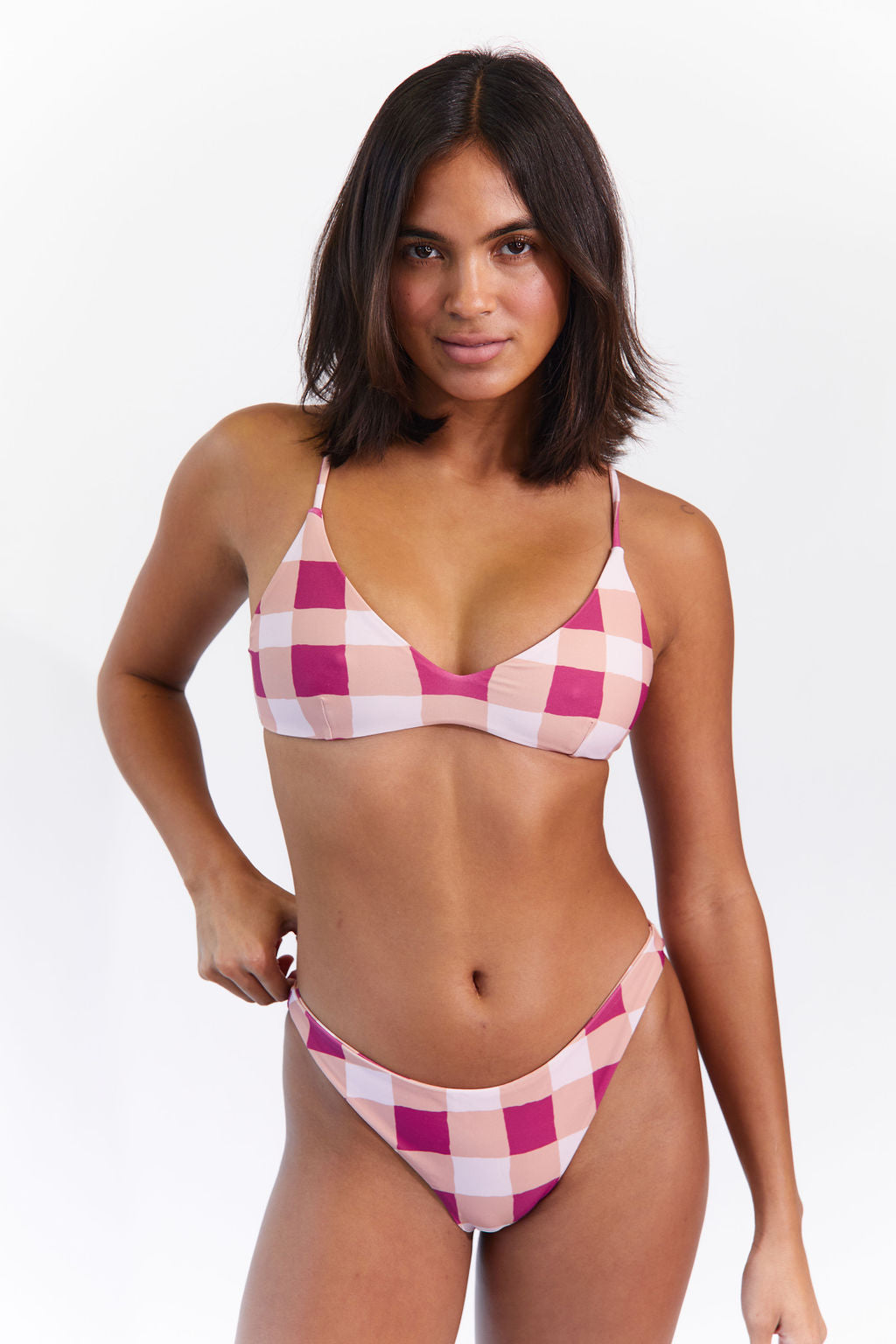 Our Lulu top is the sister to our best selling Stella top with adjustable straps and metal clasp closure in the back.