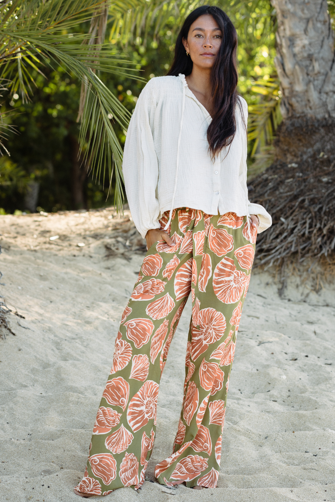 Lulu Top // Shell Print/Olive Boxed Floral (reversible)