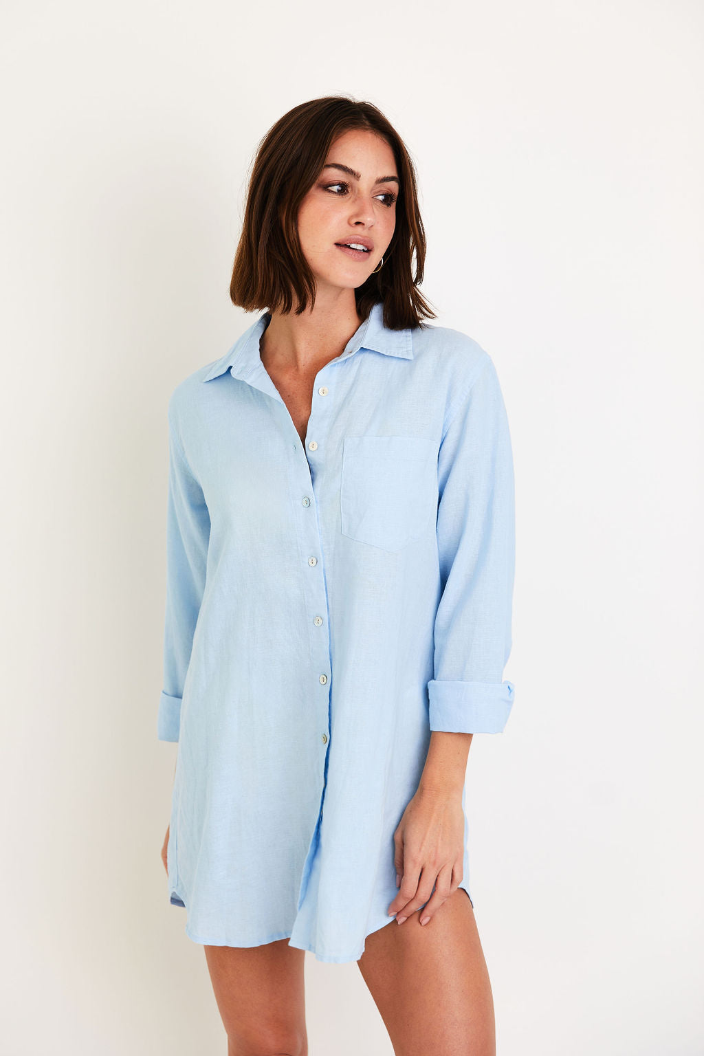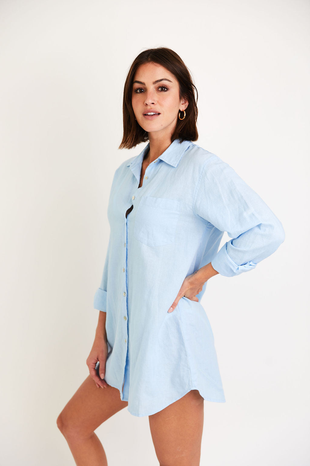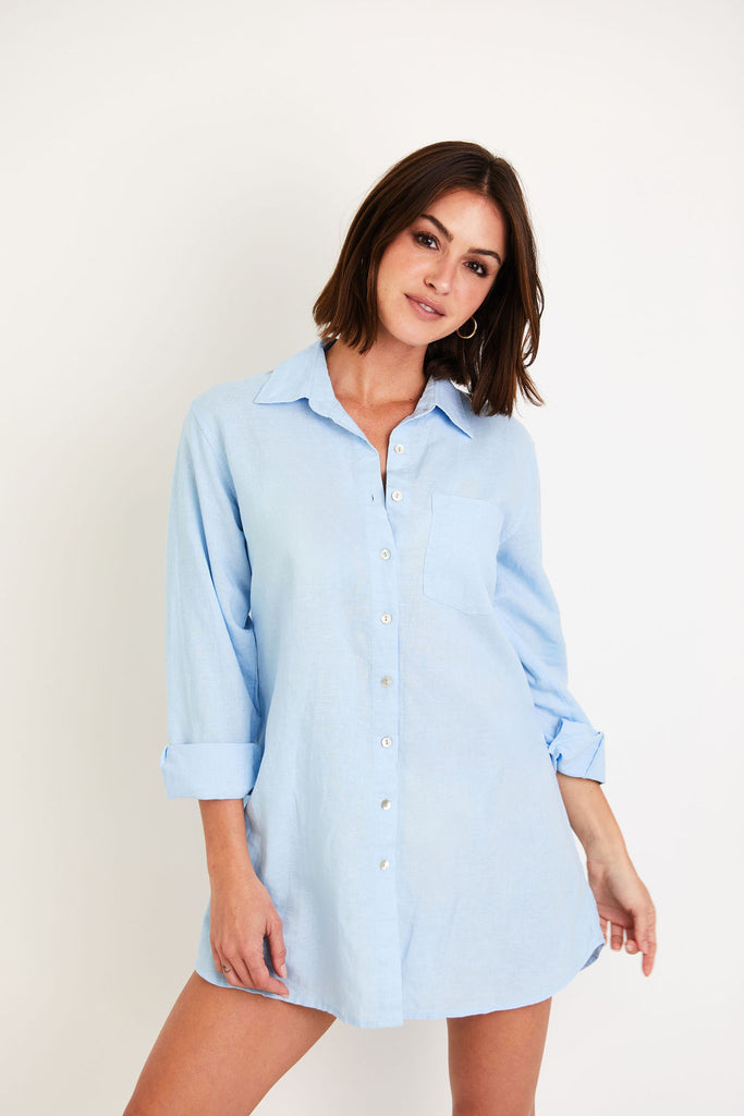 Our Harriet Shirt is your new go to button up top in a breathable linen blend.