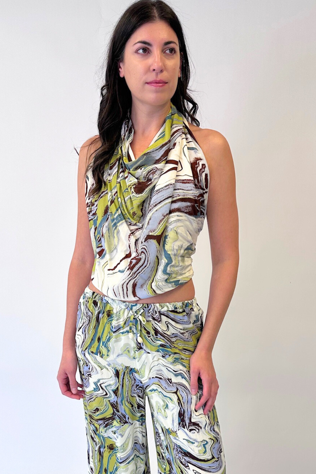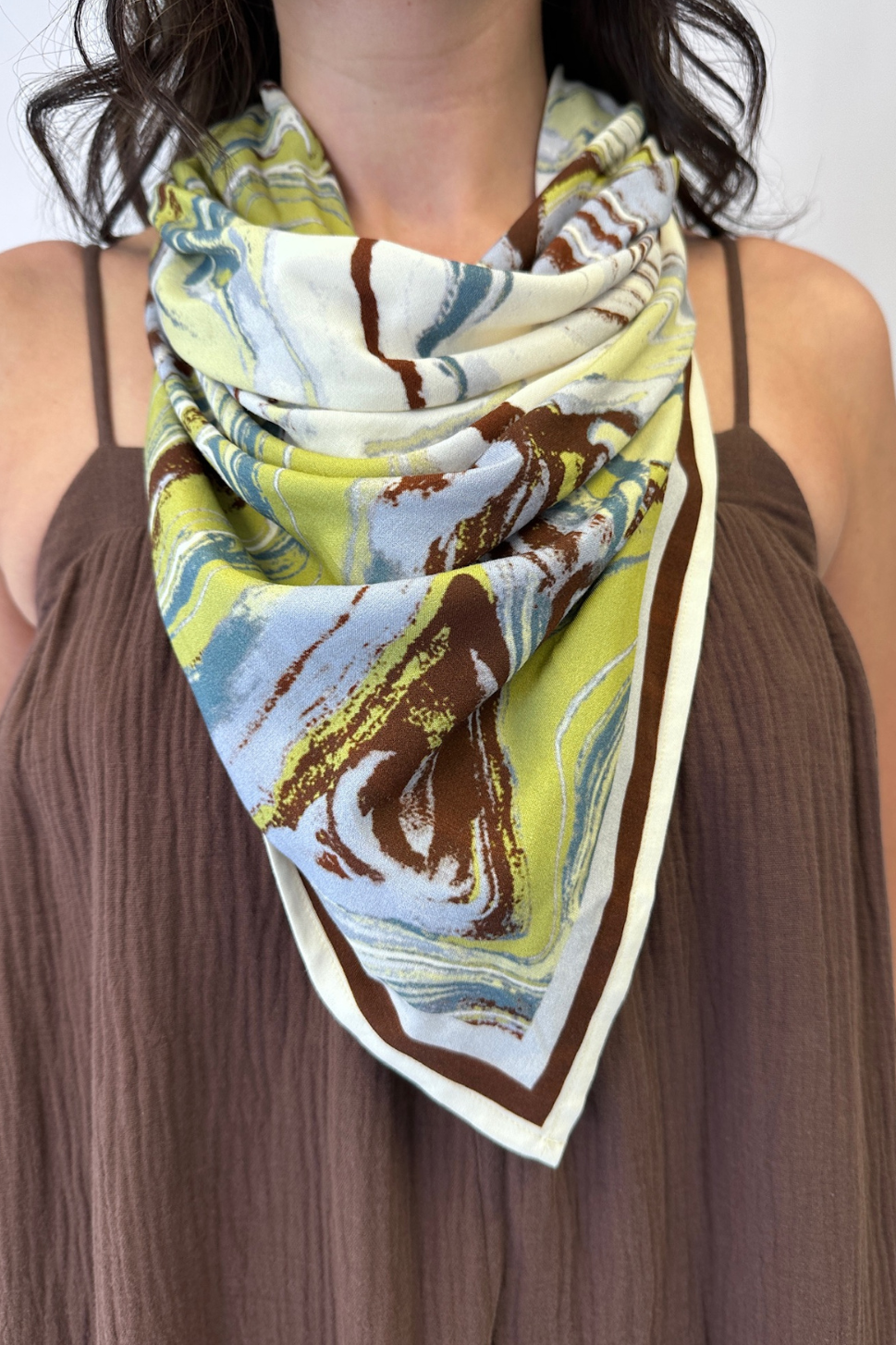 Our new scarf in marbled printed fabric- the perfect addition to elevate any outfit!